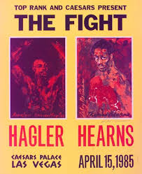 Marvellous Marvin Hagler was the reigning champion. This awesome example of boxing finest was defending his title for the 11th time. Never yet receiving the credit his skills and durability deserved Hagler was motivated in part by a need to be recognised, and paid, at the level he believed he had earned. Having defeated Roberto Duran the previous year taking on “The Hitman” would mean only Sugar Ray Leonard would be missing from a stellar CV.