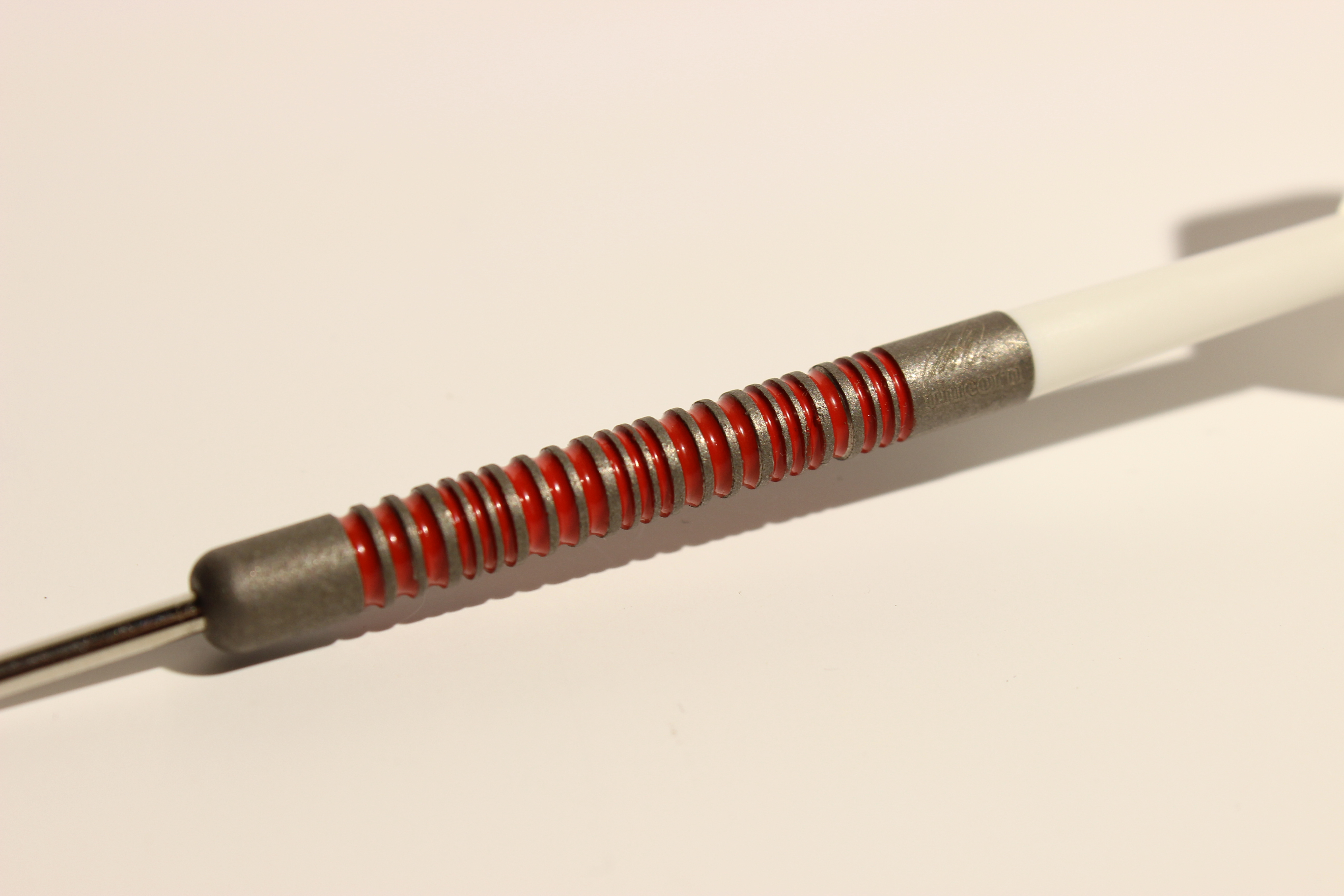 The darts all featured the same grip pattern but differed in coating and color. This dart, the Unicorn Global Paul Nicholson dart was only featured in 20 gram which was the weight Paul used himself. The dart features a gripper finish which was also featured on several other Unicorn darts. The ring grip pattern features red paint in the grooves which gives the dart a unique look and results in a comfortable grip.