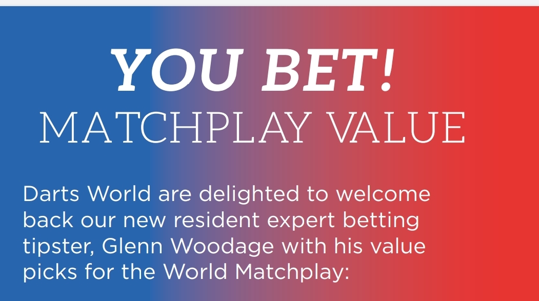 Once again, Darts World are delighted to welcome back our new resident expert betting tipster, Glenn Woodage. This time, Glenn looks at his value picks for the World Matchplay:
