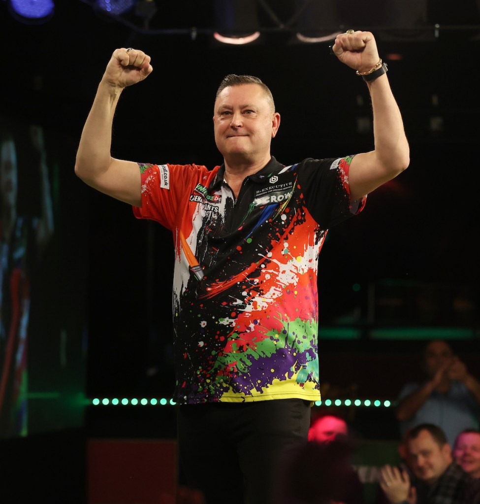 The Scot was never really troubled by the 1988 World Champion, although we did see glimpses of the old Anderson. A 116 checkout in the first set a highlight and 180 with his final three darts meaning a crowd-pleasing ‘finger point’ trademark celebration.
