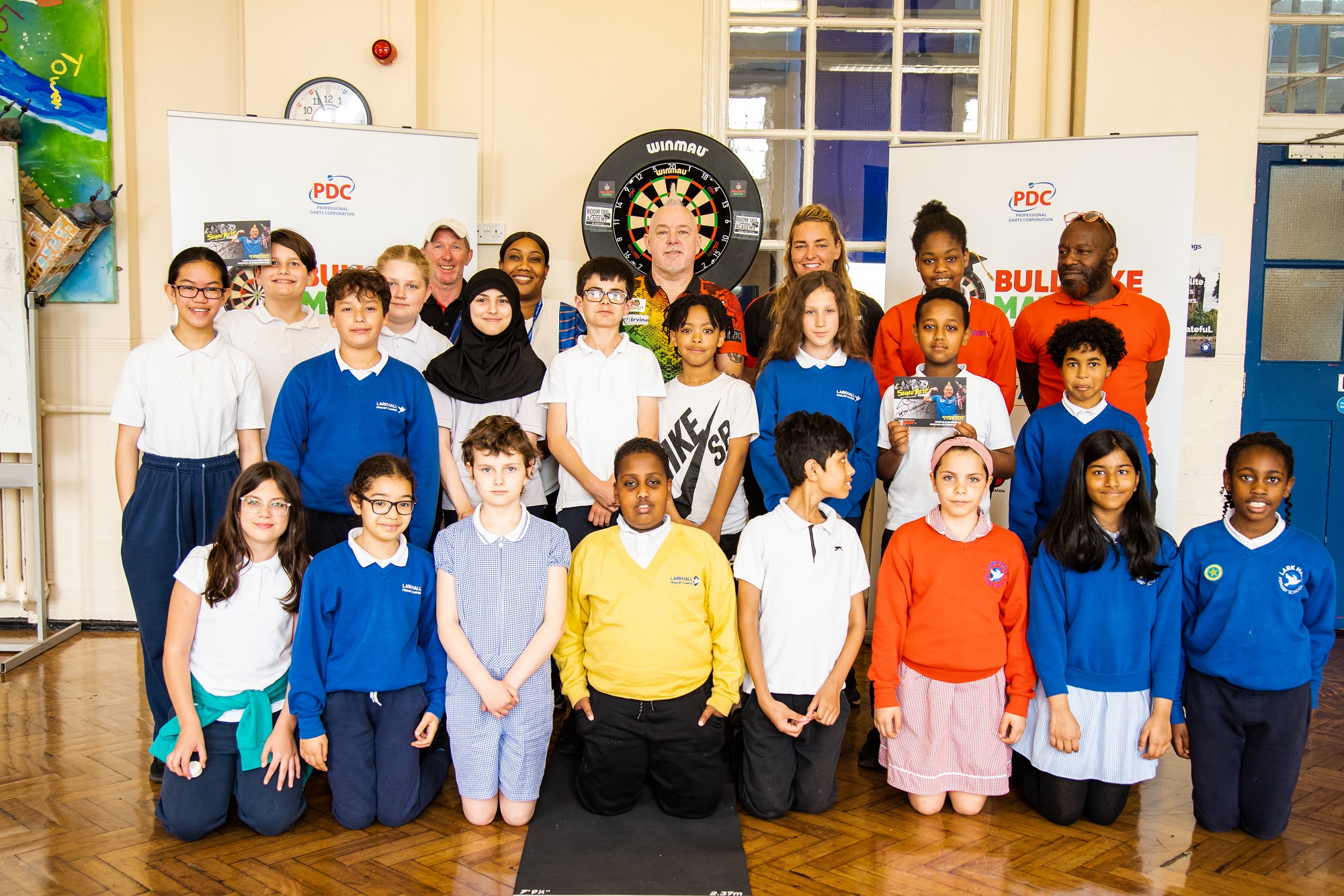 World Darts Champion Peter Wright visited Lark Hall Primary School in south London on Wednesday as part of the PDC’s Bullseye Maths programme.