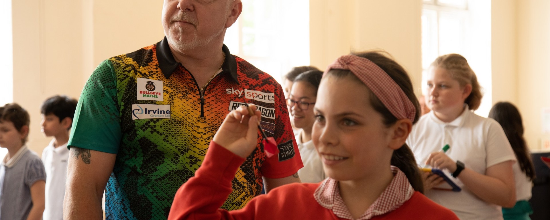 During the session, the world number one spoke to the class about his experiences with maths growing up and how darts helped him improve his numeracy, as well as giving the children some tips when throwing darts during the session.