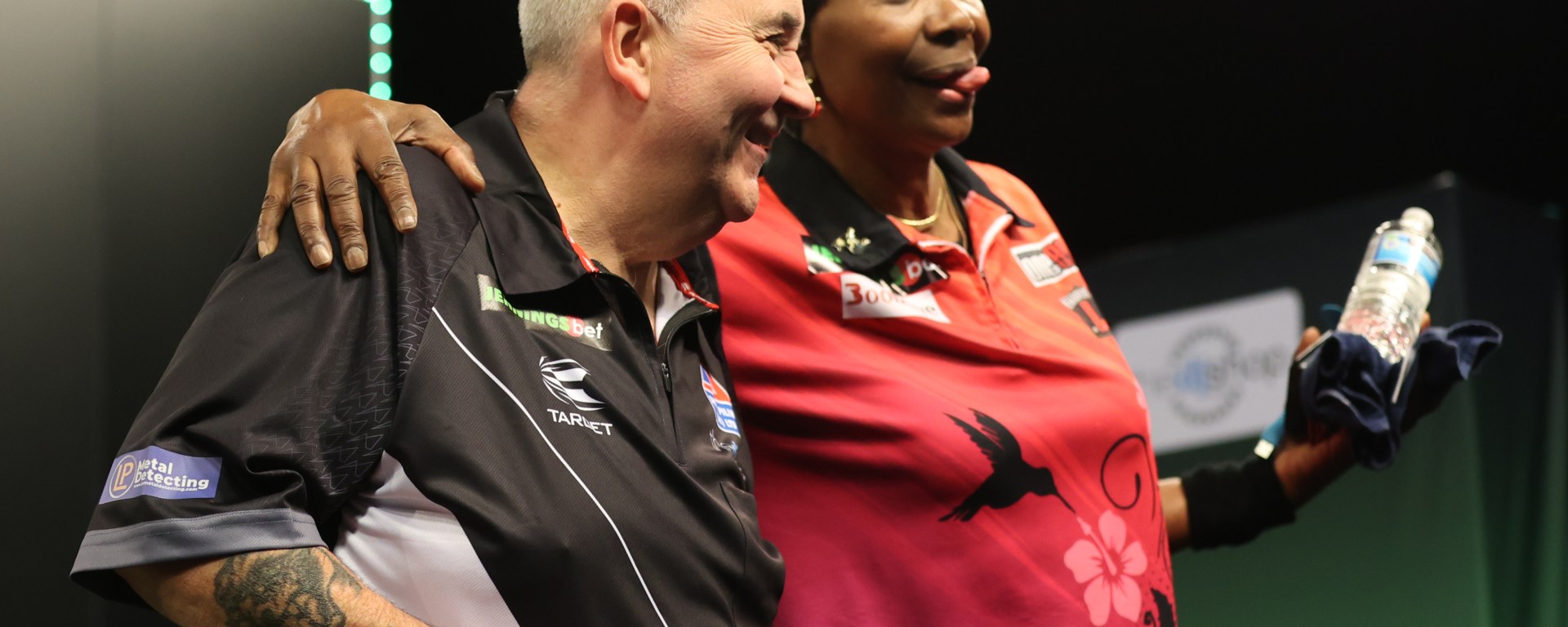 Phil ‘The Power’ Taylor defeated Deta Hedman 8-4 to progress to the 1/4 Finals of the JenningsBet World Seniors Matchplay.