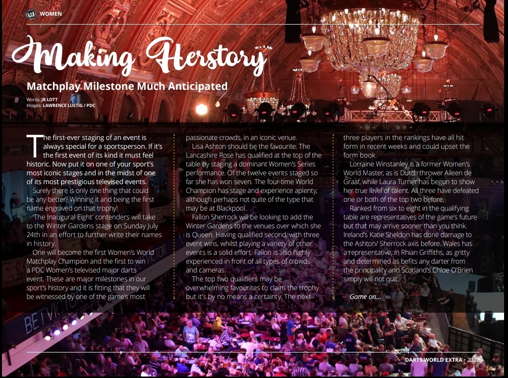 One will become the first Women’s World Matchplay Champion and the first to win a PDC Women’s televised major darts event. These are major milestones in our sport’s history and it is fitting that they will be witnessed by one of the game’s most passionate crowds, in an iconic venue.