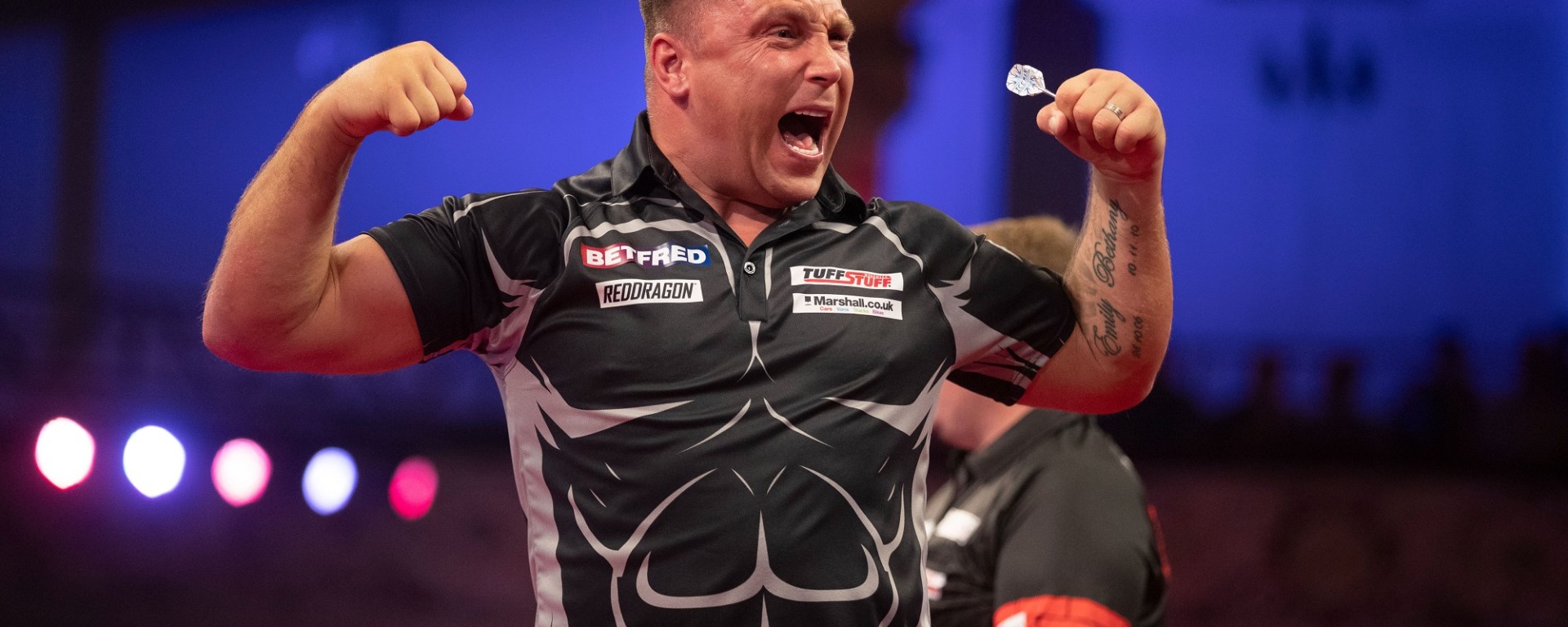 Gerwyn Price showed just why he was the World’s Number 1 Darts player, incredibly hitting eight maximums in his 10-8 victory over Martin Schindler at the Betfred World Matchplay. 2018 champion Rob Cross recovered from an 8-2 deficit to beat Chris Dobey 11-9 in the opening tungsten affair, including a 108 checkout in his late resurgence in Blackpool.