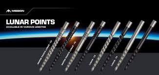 My personal highlight – I love the look of the Mission Lunar points. The points feature a milled slash, which increases the grip in the board, as well as reducing the risk of bounce-outs. The standard points are available in silver and black, and come in a choice of four lengths – 32mm, 36mm, 38mm and 40mm. The points are available in CS (complete section grip), or FS (front section grip), depending on your personal preference.