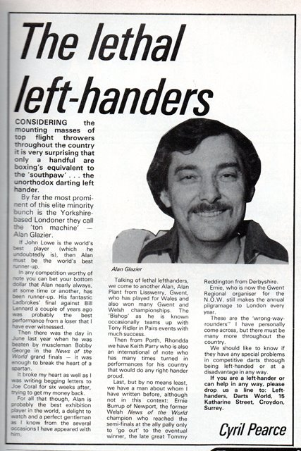 THE ‘Left Hand Gang’ has long been the subject of curiosity discussion and debate in darts. As long back as dart first burst of mass media popularity players and watchers were curious as to whether the Lefties were proportionally represented or if they were at some disadvantage.