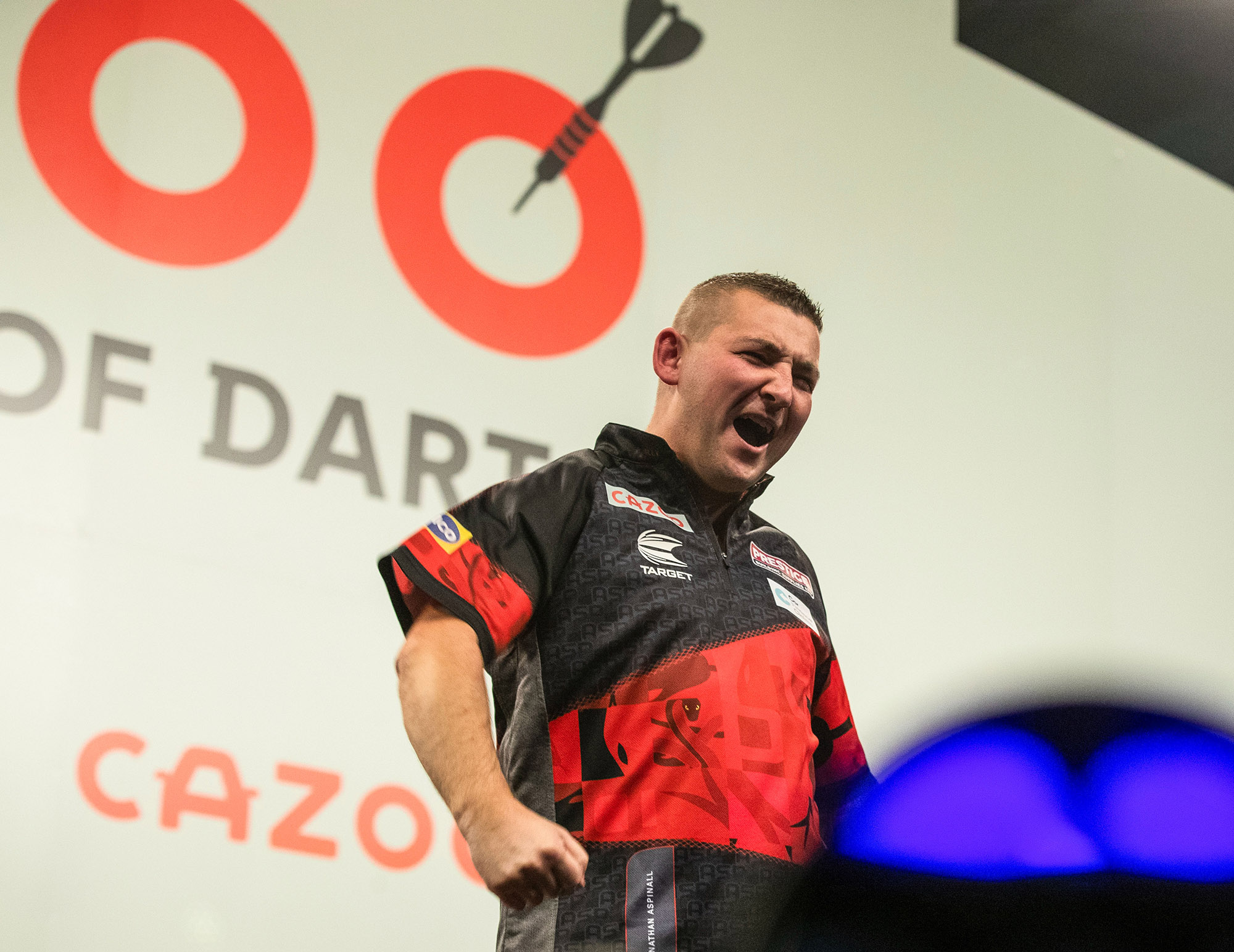 Aspinall raced out of the blocks, registering three 180s and a 177 within the opening three legs to establish a 4-1 cushion, despite missing 11 darts at double.
