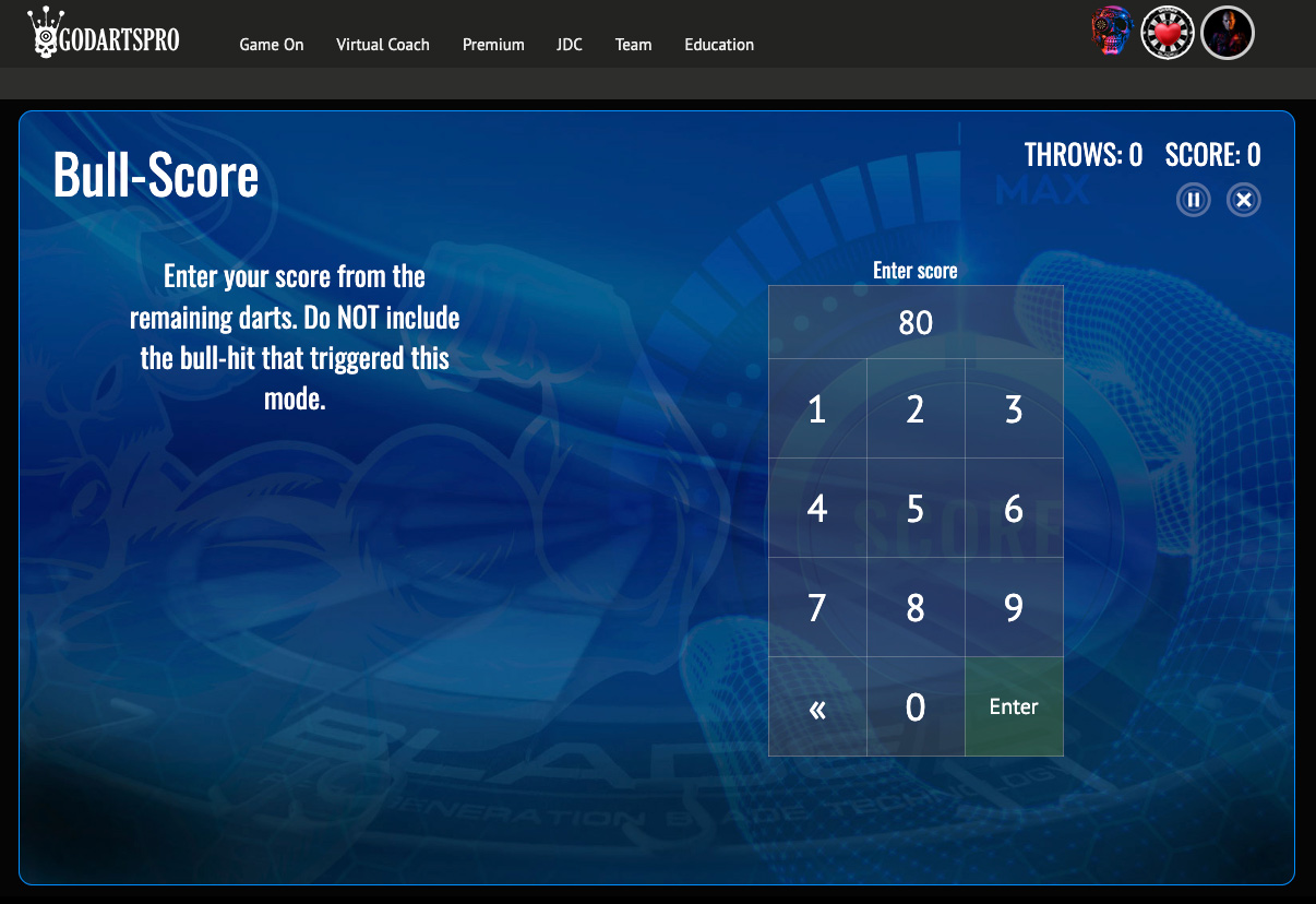 The Bull-Score game on GoDartsPro is a combination of different games my late colleague Mikko Laiho used during his years as a professional darts coach.This game will put you under serious pressure.