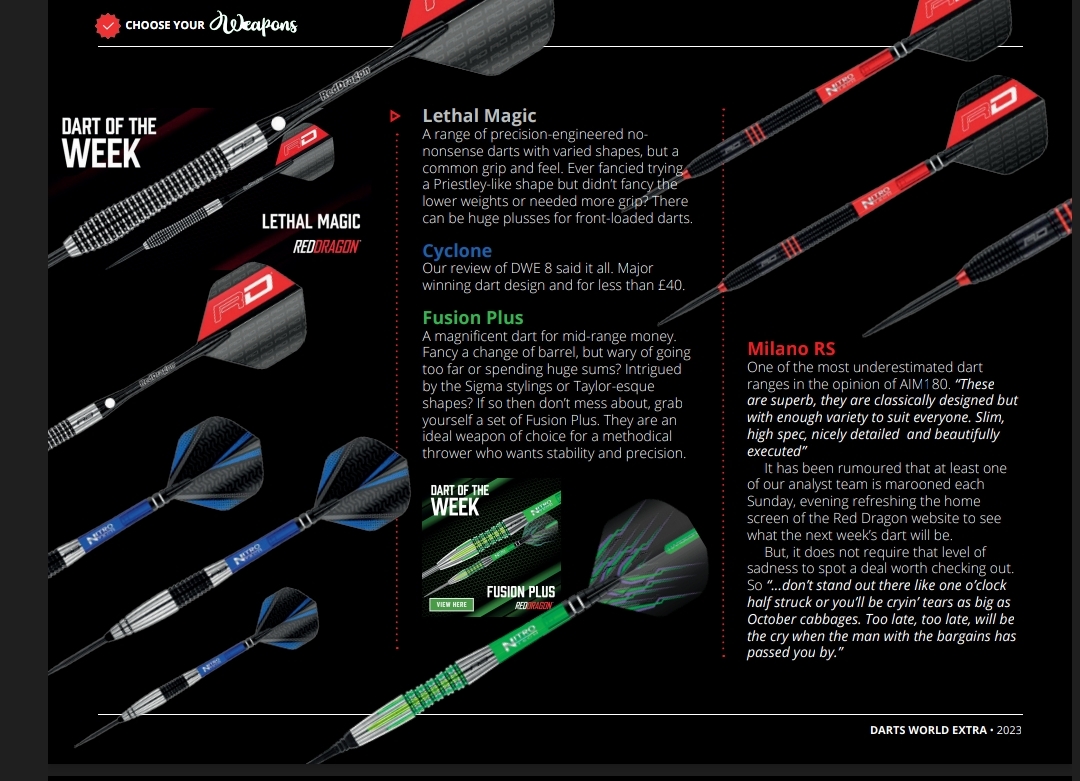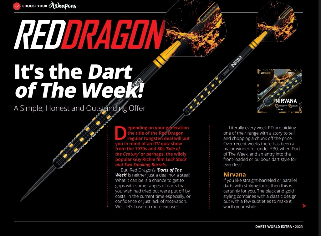 But, Red Dragon’s ‘Dart of The Week’ is neither just a deal nor is it an actual steal! What it can be is a chance to get to grips with some ranges of darts that you wish had tried but were put off by costs, in the current time especially, or confidence or just lack of motivation. Well, let’s have no more excuses!
