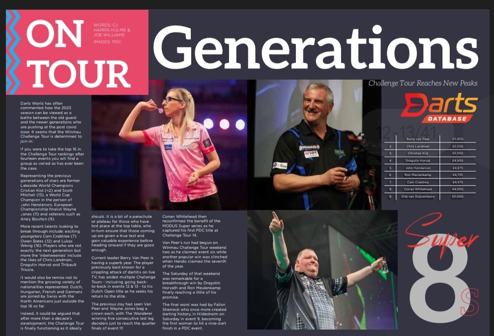 Darts World has often commented how the 2023 season can be viewed as a battle between the old guard and the newer generations who are pushing at the post covid door. It seems that the Winmau Challenge Tour is determined to join in: