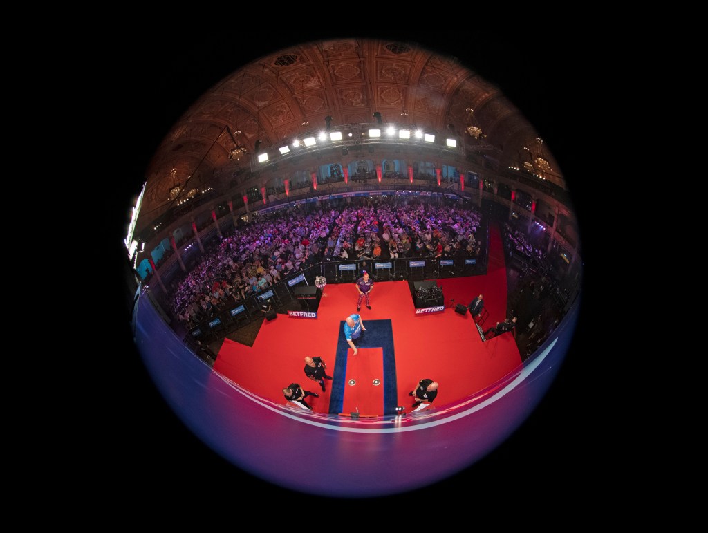 Lawrence Lustig is a former official photographer to the PDC – for this image he used a Canon 1dx mk2 with an 8-14mm zoom lens at 8mm on F4 at a speed of 1/320th with an iso of 3200.