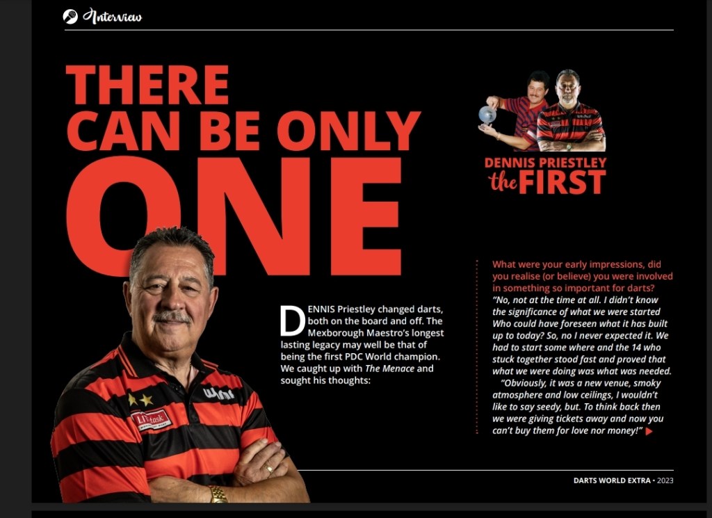 DENNIS Priestley changed darts, both on the board and off. The Mexborough Maestro’s longest lasting legacy may well be that of being the first PDC World champion. We caught up with The Menace and sought his thoughts: