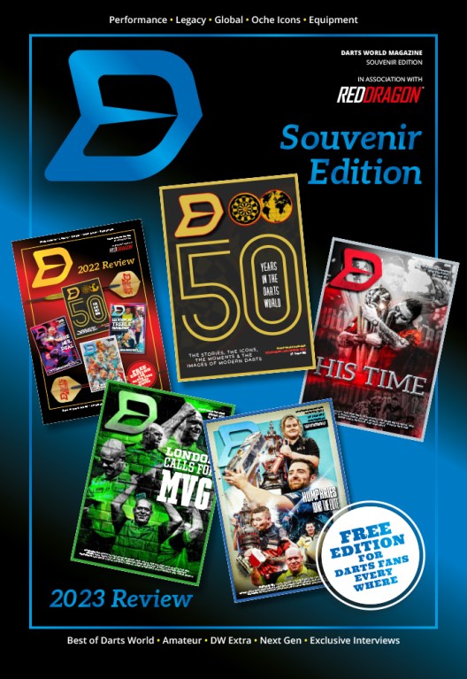 Our fantastic souvenir edition of Darts World has been produced and hosted TOTALLY FREE from 2020 onwards. We hope you’ll be even more delighted with our 2023/24 Review special edition.
