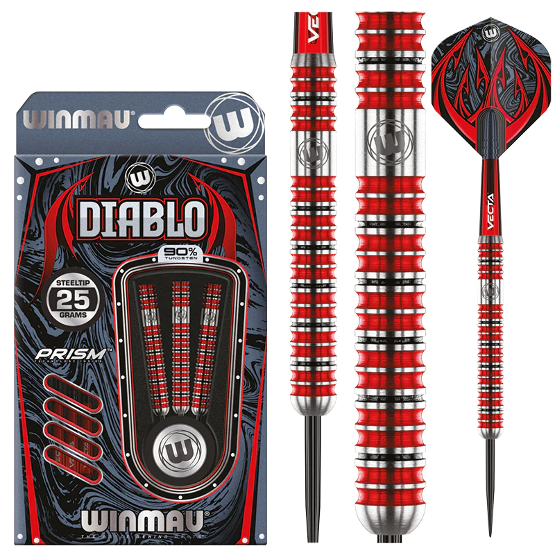 A non player set from a 2023 Winmau Launch, the Diablo range certainly caught the eye of many, with a striking red and black barrel and aggressive-looking style of grip.