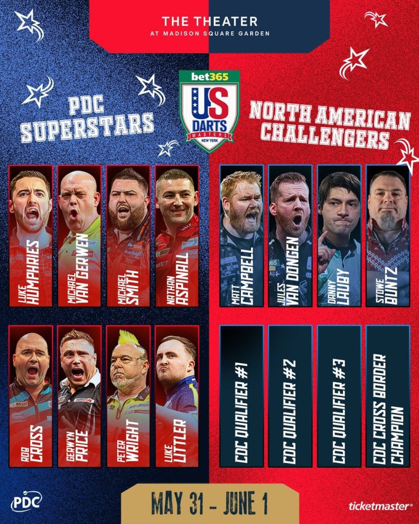 Alongside the US Darts Masters, the bet365 North American Championship will also be staged on Saturday June 1, as the eight North American competitors go head-to-head for that title and a spot in the 2024/25 Paddy Power World Darts Championship.