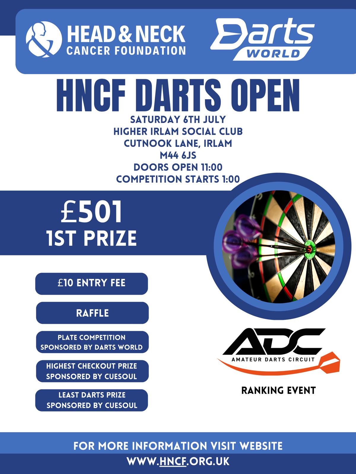 Saturday 6th of July at Higher Irlam Social Club M44 6JS. Entry via Darts Atlas: