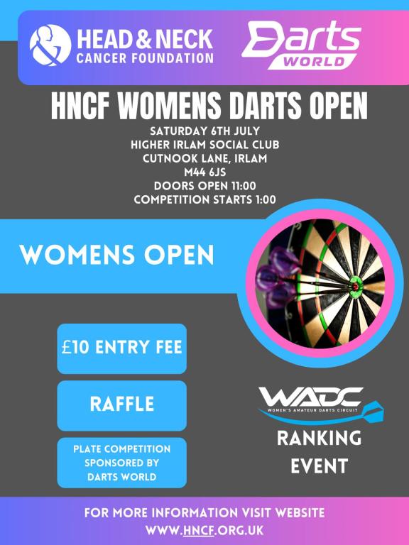 The day is in aid of the Head and Neck Cancer Foundation and also looks like a superb day for dart players and friends and family alike.