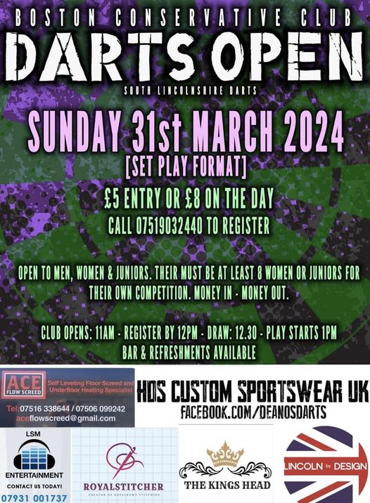 Another Easter weekend darts fest, this time in Lincolnshire. A MIMO formulae to keep this simple with £5 in advance or £8 in the day to secure entry.