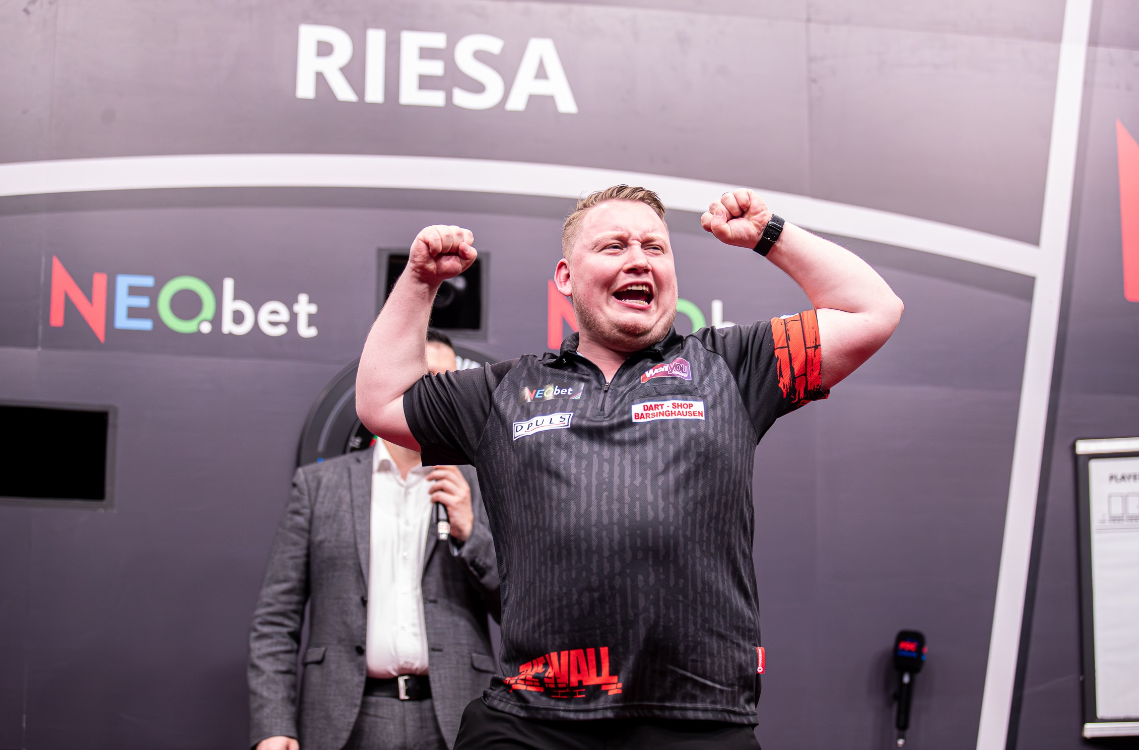 German star Martin Schindler will now take on Richard Veenstra for a quarter-final spot after he delighted the Riesa crowd with a 6-3 defeat of former International Darts Open champion Joe Cullen, averaging 105 and landing six 180s in a fine display.