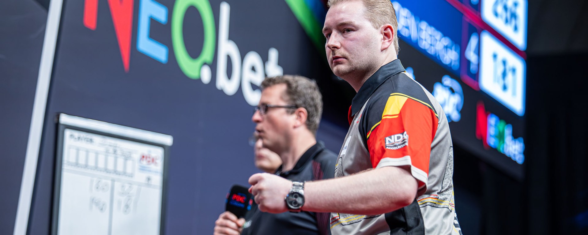 Despite Clemens’ early exit, Kevin Troppmann delighted the home crowd with a last-leg victory against Benjamin Pratnemer, recovering from 4-0 down and sealing his progress with a roof-raising 167 finish.