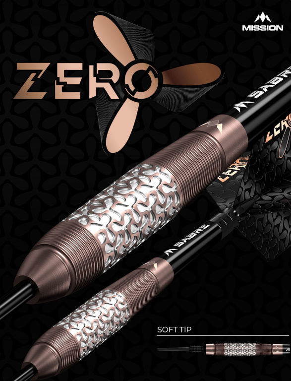 The flagship product of the launch is the new Zero dart – the second 97.5% tungsten barrel to be added to the Mission range. The Zero’s feature a torpedo style barrel, with a bronze PVD coating. The Zero symbol creates a unique style of grip, sandwiched in-between two micro-grip sections.