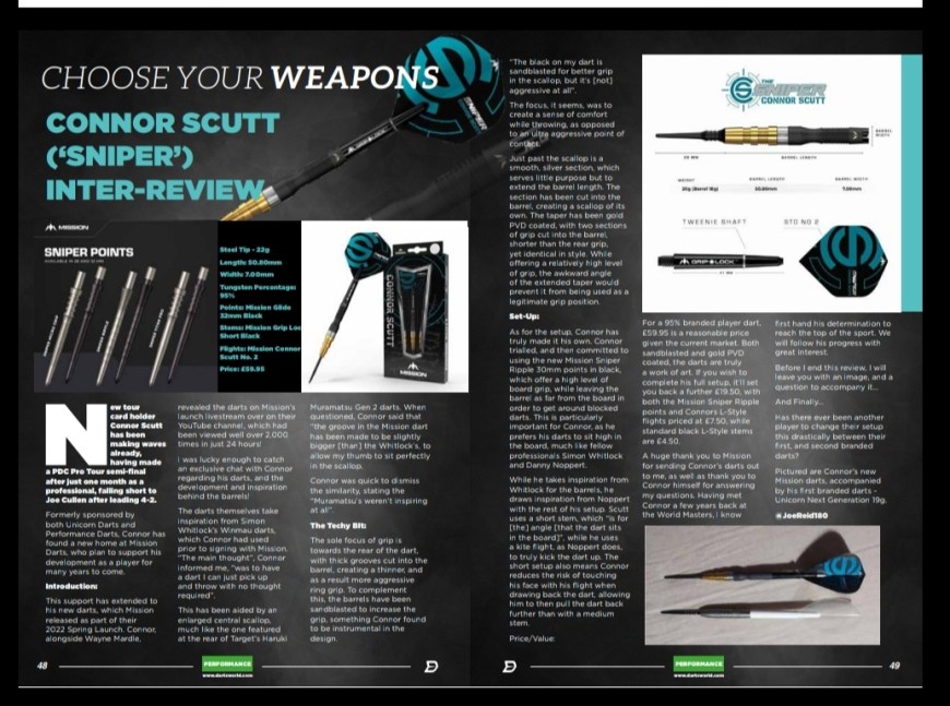 …darts certainly turned the heads of darts fans, with a striking and unique design – a complete overhaul when compared to the darts… Continue reading Mission Connor Scutt V2: Inter-re-view